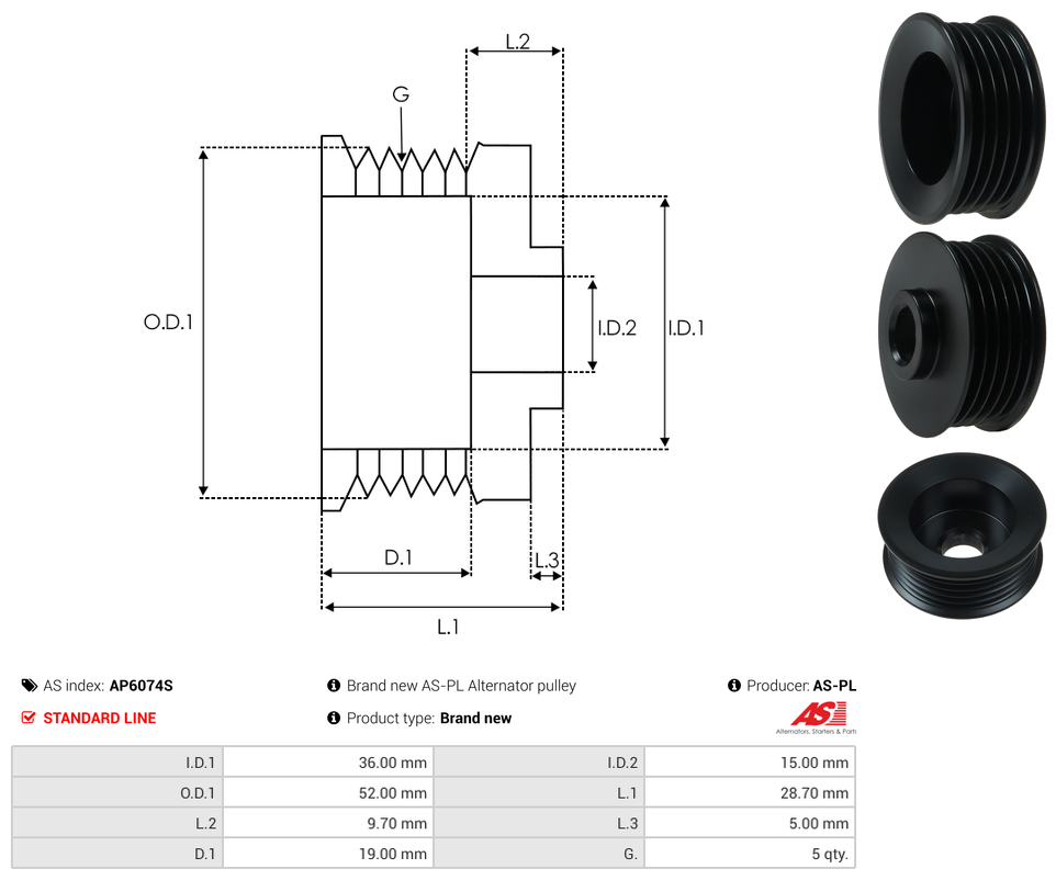 | Pulley Grooves | 5 qty |