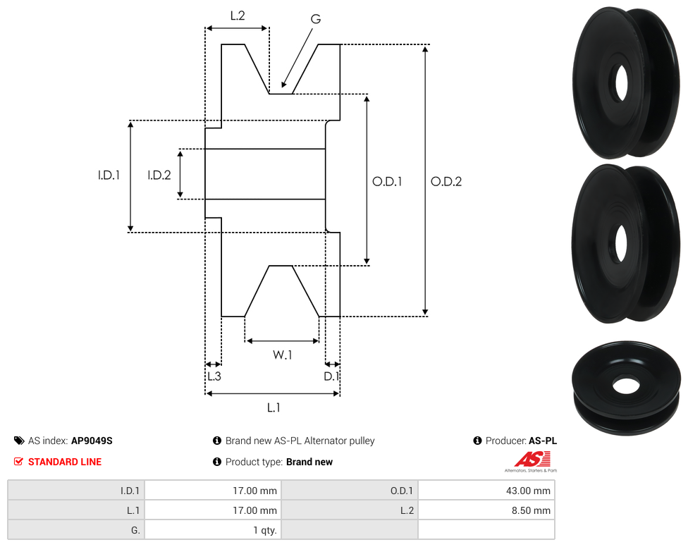 | Pulley Grooves | 1 qty |