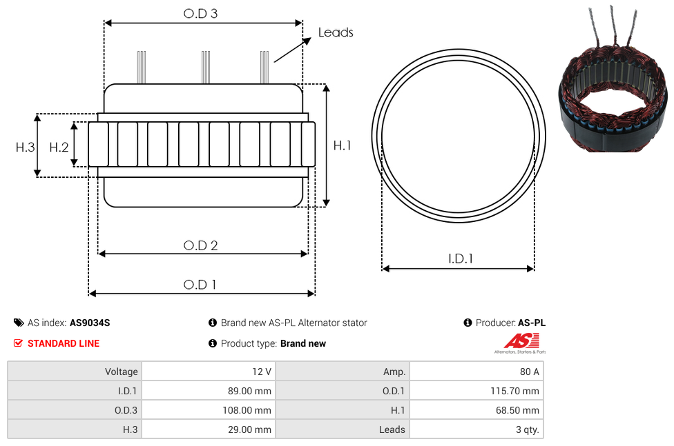 | Outside Diameter of Windings (O.D.3) | 108 mm |
