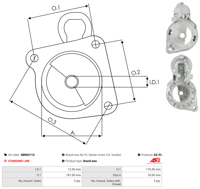 | Mount Hole Center - Center (O.1) | 101 mm |