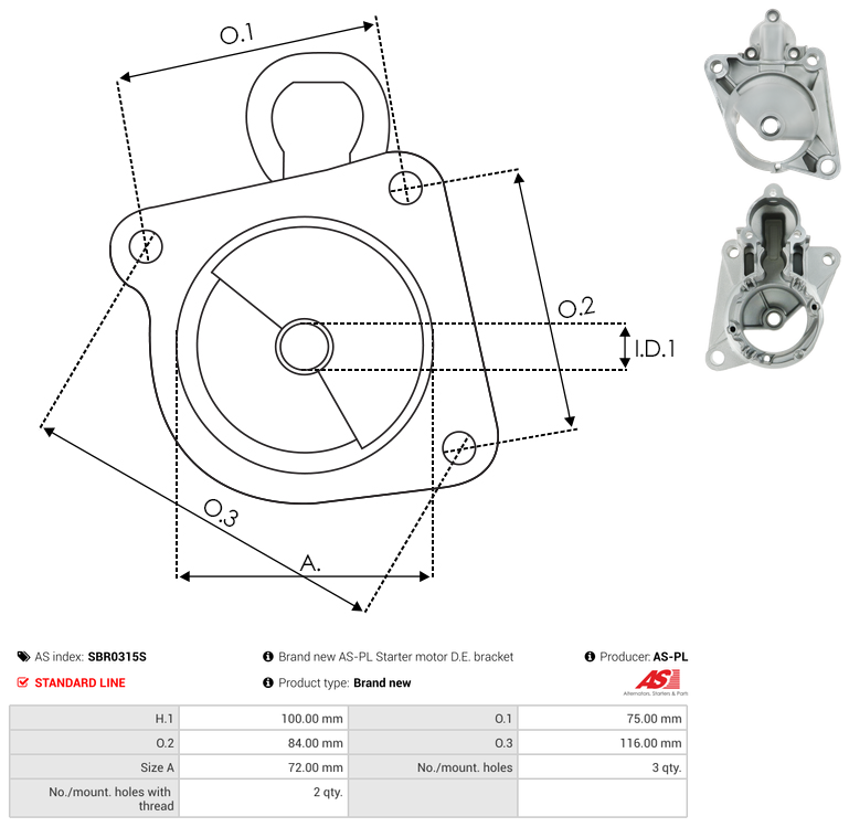 | No./Mount holes | 3 qty |