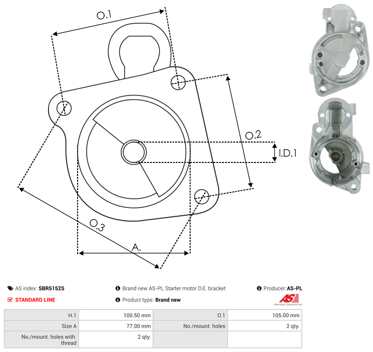 | No./Mount holes | 2 qty |