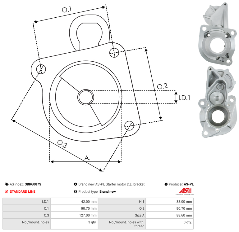 SBR6087S - Brand new AS-PL Starter motor D.E. bracket