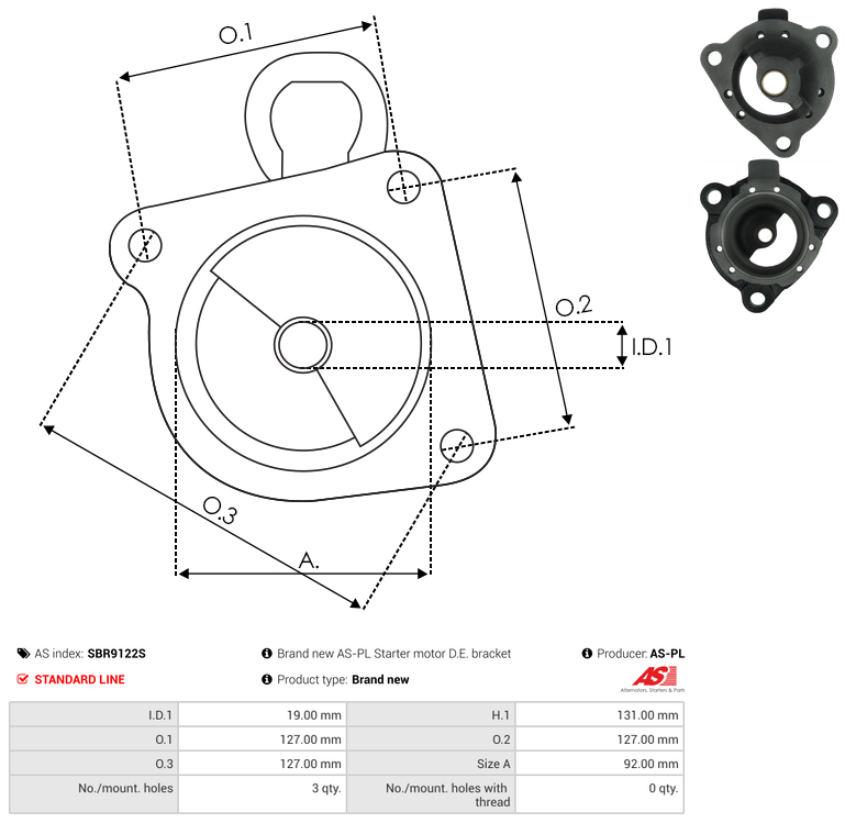 SBR9122S - Brand new AS-PL Starter motor D.E. bracket