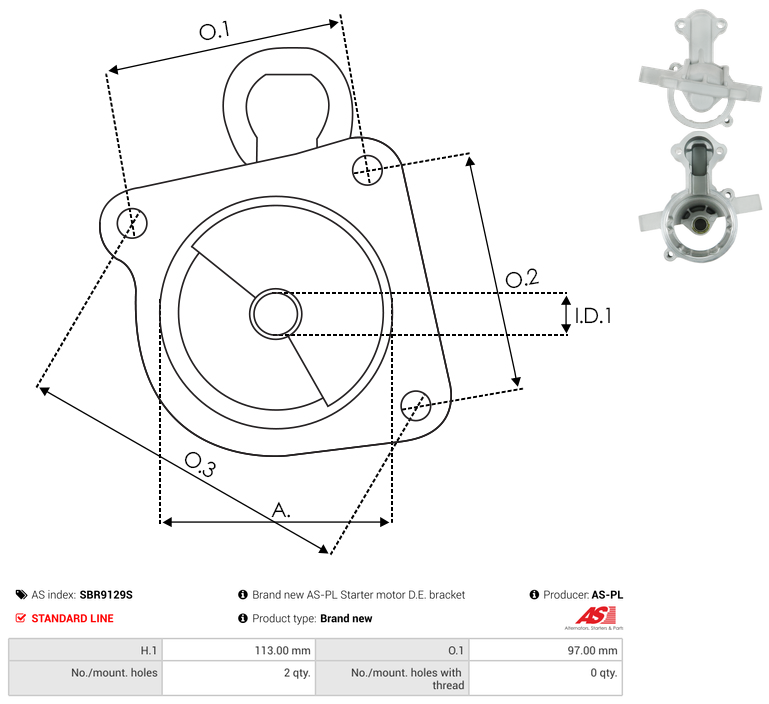SBR9129S - Brand new AS-PL Starter motor D.E. bracket