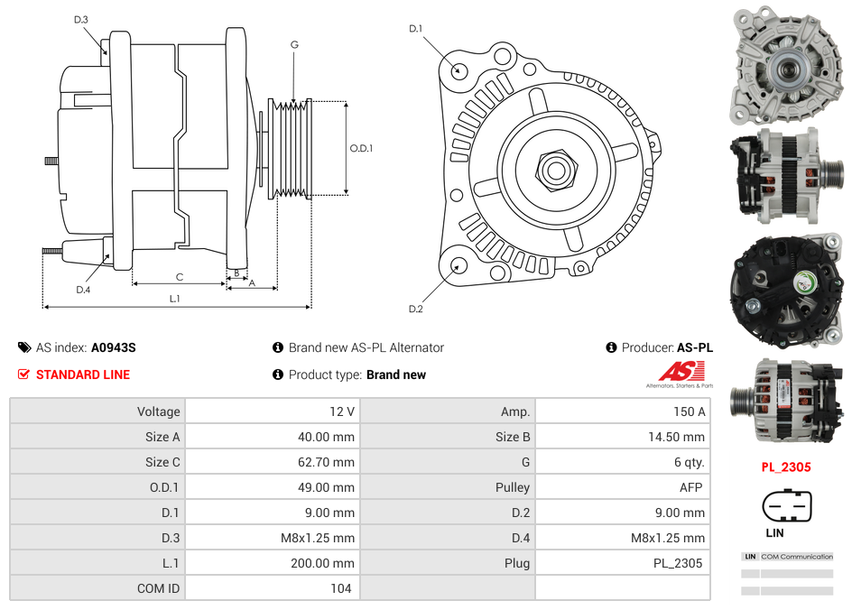 | Pulley Outside Diameter (O.D.1) | 49 mm |