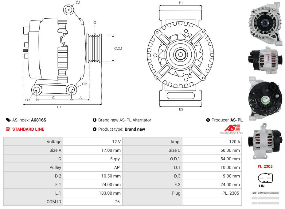 | Pulley Outside Diameter (O.D.1) | 54 mm |