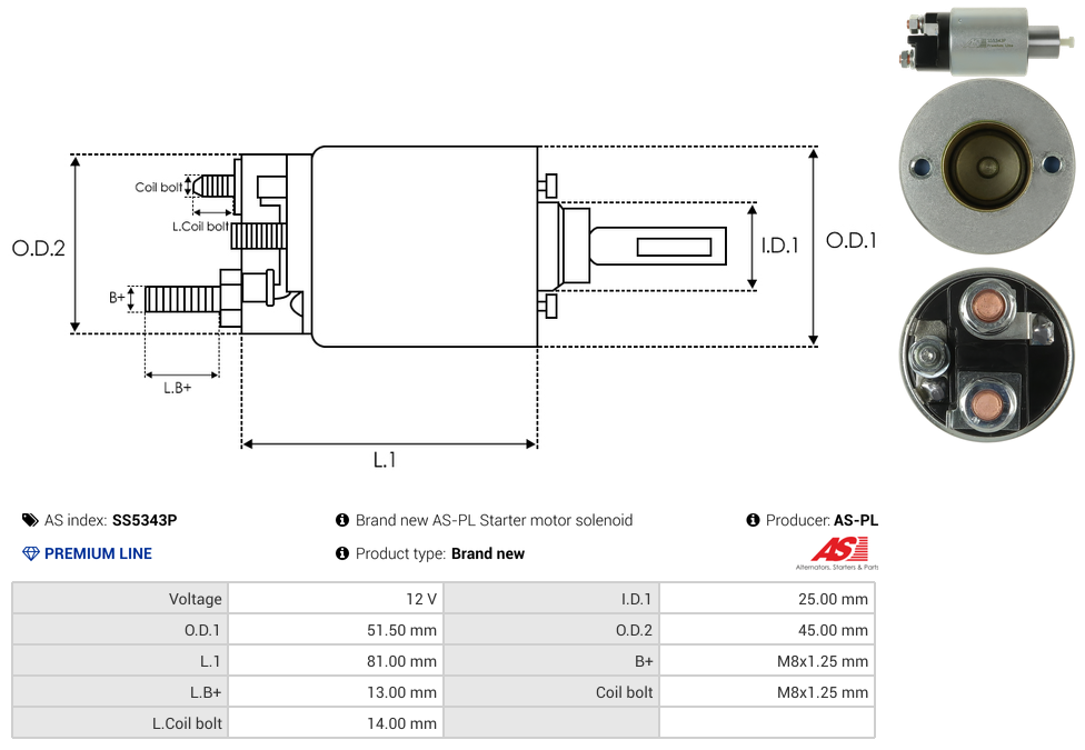 | B+ Stud Diameter & Thread Pitch (B+) | M8x1.25 mm |
