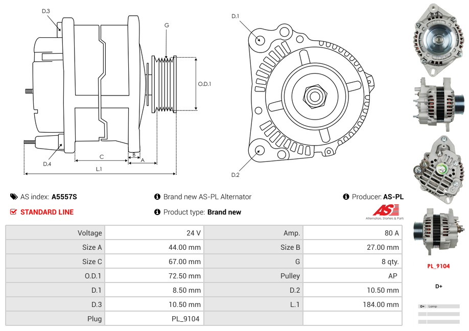 | Pulley Outside Diameter (O.D.1) | 72.50 mm |