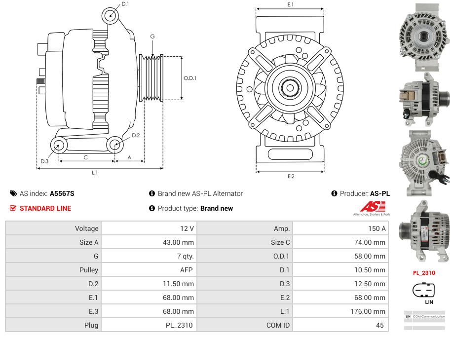 | Pulley Outside Diameter (O.D.1) | 58 mm |