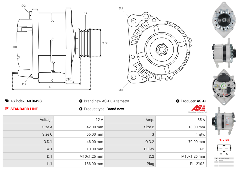 | Pulley Outside Diameter (O.D.1) | 46 mm |