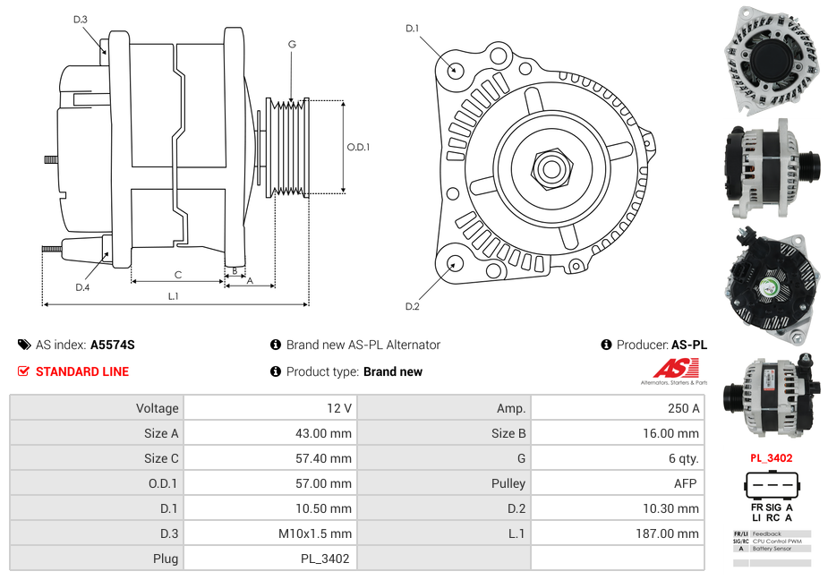 | Pulley Outside Diameter (O.D.1) | 57 mm |
