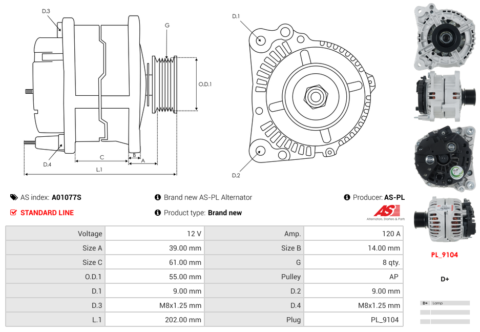 | Pulley to Mount Distance (A) | 39.00 mm |