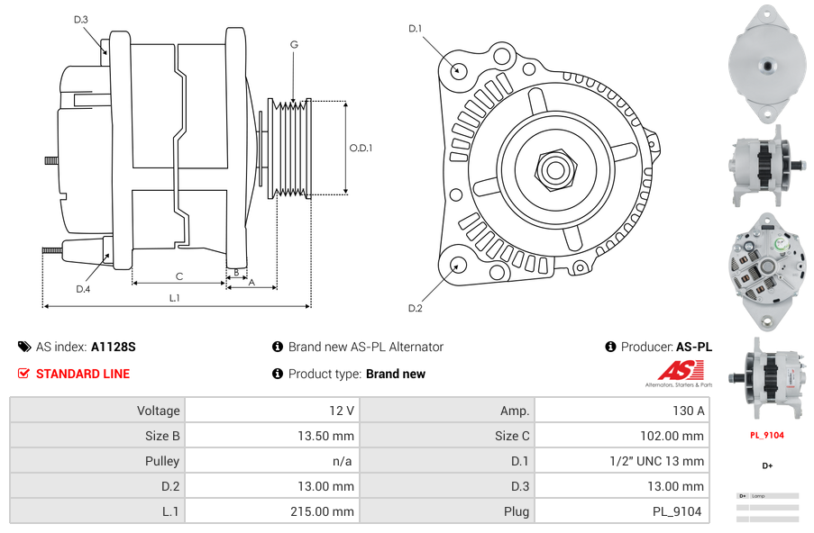 | Diameter (D.1) | 1/2" UNC 13 mm |
