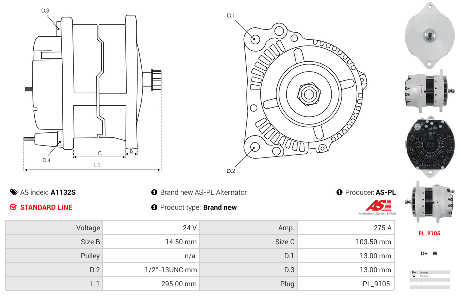 | Mount Inside Length or Pad Mount C-C (C) | 103.50 mm |