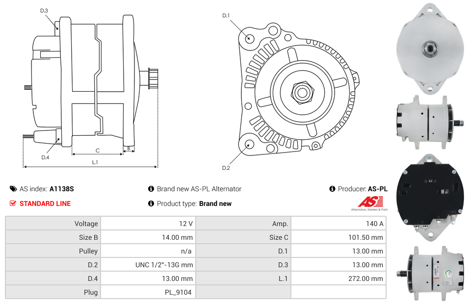 | Mount Inside Length or Pad Mount C-C (C) | 101.50 mm |
