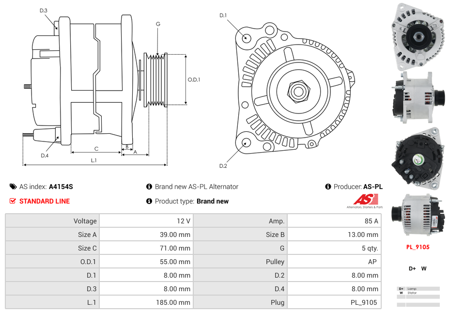 | Pulley to Mount Distance (A) | 39.00 mm |