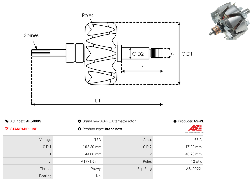 | Outside Diameter (O.D.2) | 17.00 mm |