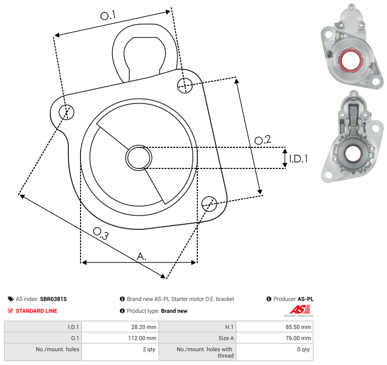 SBR0381S - Brand new AS-PL Starter motor D.E. bracket