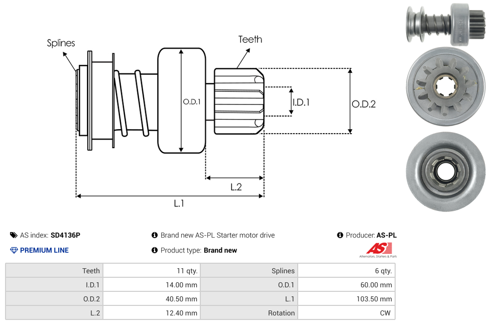 | No./Splines | 6 qty |