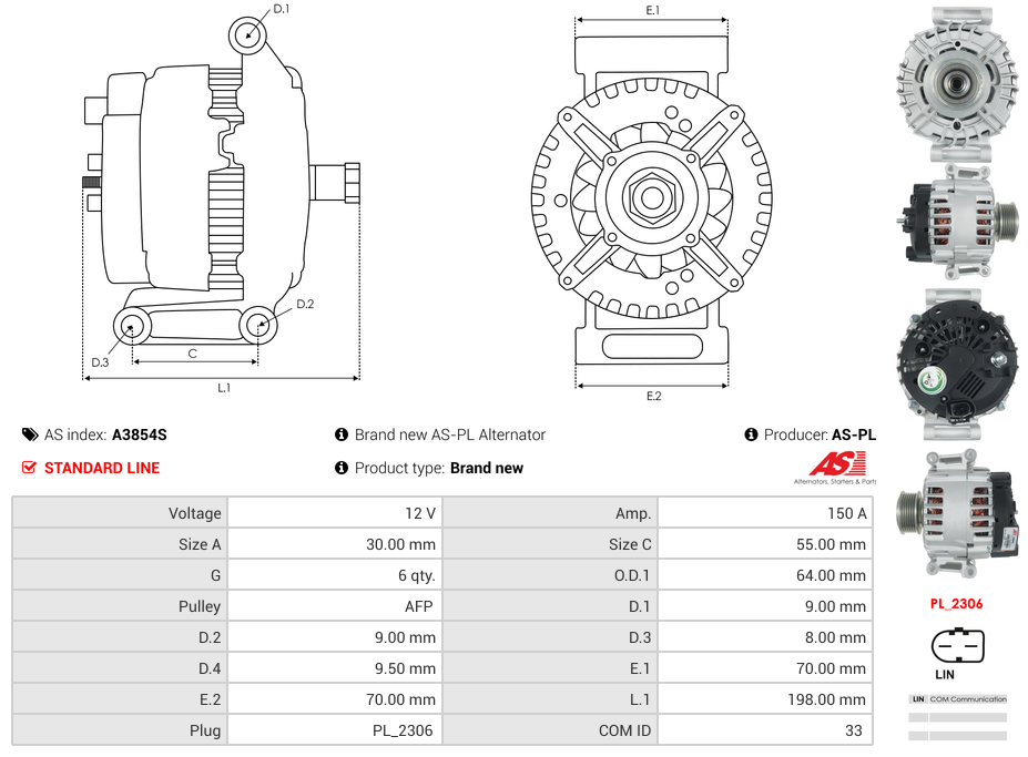 | Mount Inside Length or Pad Mount C-C (C) | 55.00 mm |