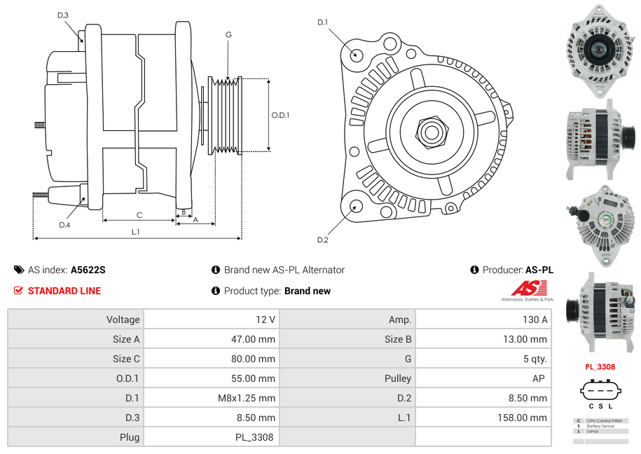 | Pulley to Mount Distance (A) | 47.00 mm |