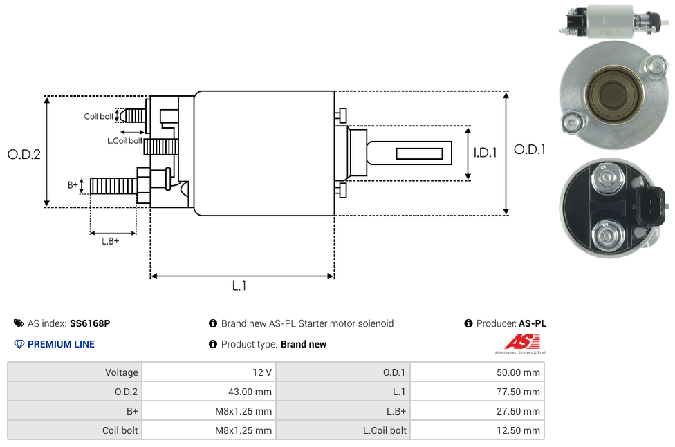 | B+ Stud Diameter & Thread Pitch (B+) | M8x1.25 mm |