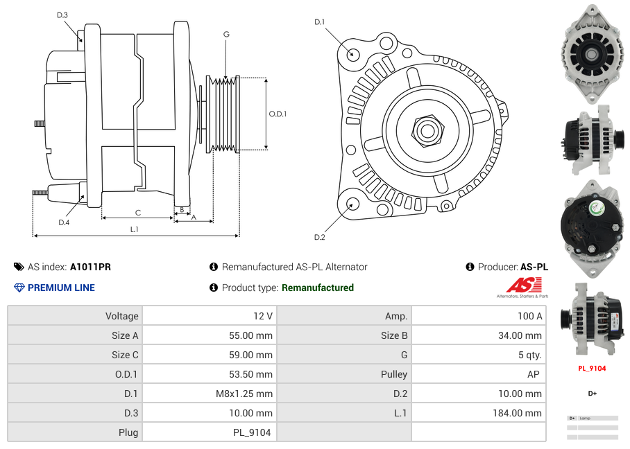 | Pulley Outside Diameter (O.D.1) | 53.50 mm |