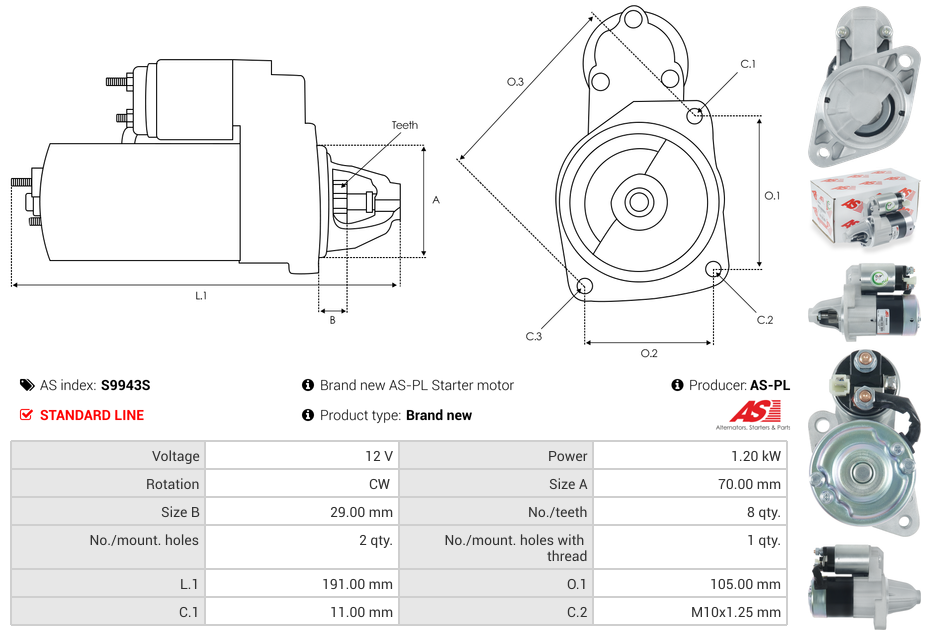 S9943S - Brand new AS-PL Starter motor