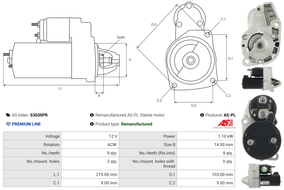 | Mount Hole Center - Center (O.1) | 103.00 mm |