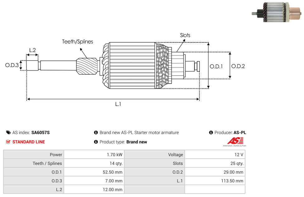 | No./Splines | 14 qty |