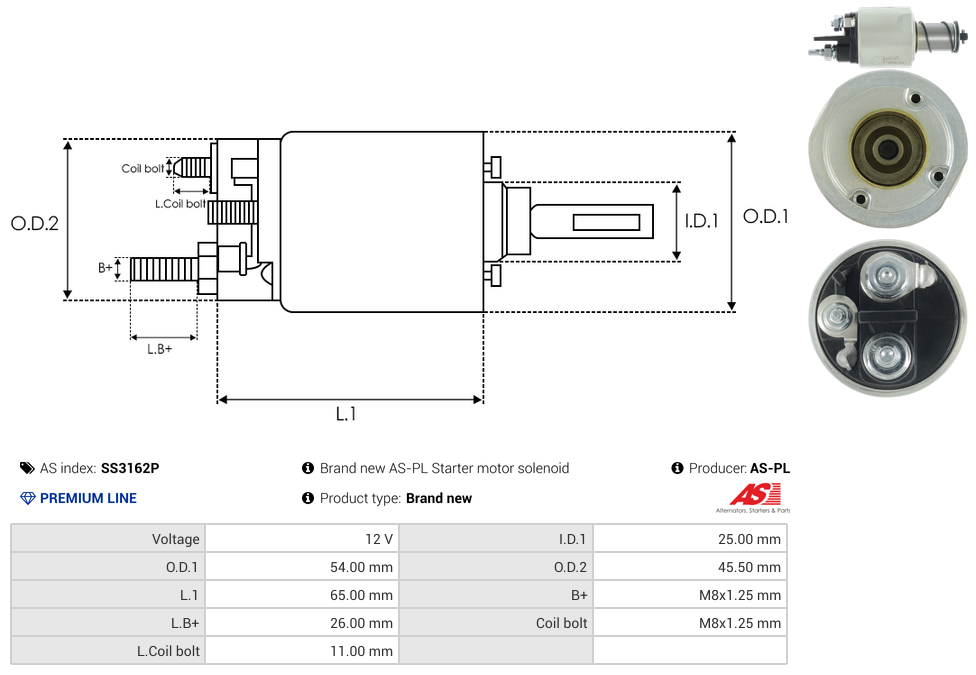 | B+ Stud Diameter & Thread Pitch (B+) | M8x1.25 mm |