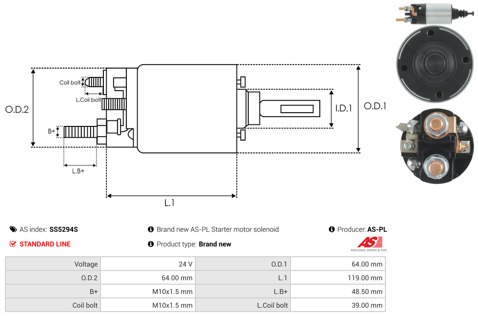 | B+ Stud Diameter & Thread Pitch (B+) | M10x1.5 mm |