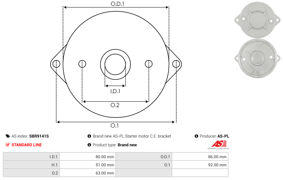 SBR9141S - Brand new AS-PL Starter motor C.E. bracket